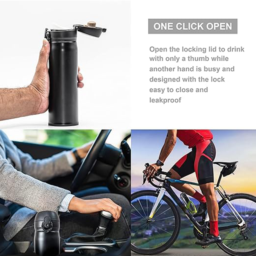 One-Click Open Double Wall Insulated Flask Thermos for Hot and Cold Drinks, Travel Coffee Mug, Stainless Steel Sports Water Bottle Leakproof for Kids Adults.